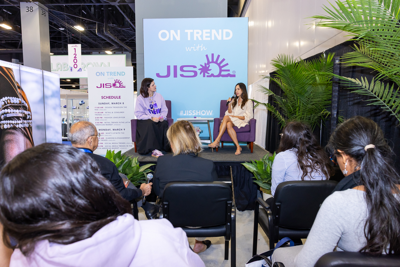 Más allá de la experiencia de compra, JIS Spring presentó una nueva función educativa y comunitaria llamada “On Trend with JIS”. Diseñada como un rincón de conversación al estilo podcast en el piso de exhibición, la serie presentó discusiones informales sobre temas que están dando forma a la industria de la joyería hoy en día. Las conversaciones exploraron temas como la evolución de los mercados de metales, tendencias nupciales, comportamiento de compra de consumidor y estrategias para que los minoristas naveguen las condiciones económicas cambiantes. Reflejando la creciente audiencia internacional de la feria, el programa incluyó sesiones tanto en inglés como en español, asegurando que las conversaciones fueran accesibles para la diversa comunidad global que asiste a JIS.